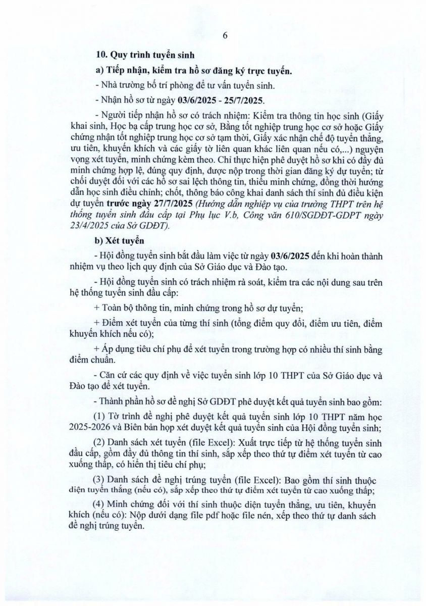 KẾ HOẠCH TUYỂN SINH LỚP 10 NĂM HỌC 2025-2026
